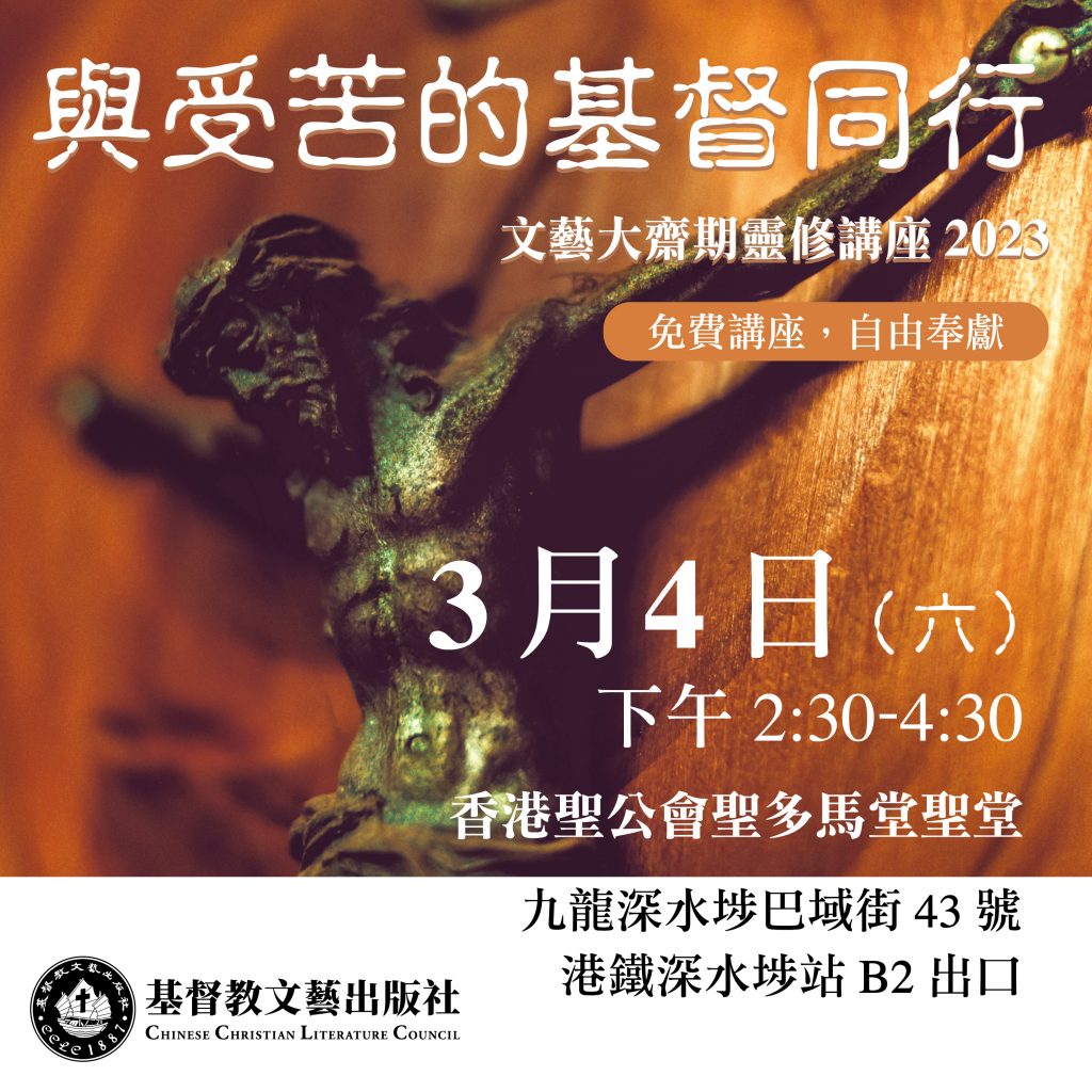 文藝大齋期靈修講座2023: 【與受苦的基督同行】 大齋期是信徒與基督一同受苦,增進靈性的節期。在「與受苦的基督同行」講座中,兩位聖公會牧師們分享了他們對苦難的看法和操練方法。潘正行牧師帶領我們思想在苦路中,耶穌以沉默面對受苦,彰顯了祂與人的痛苦共情。基督從不迴避苦難,而是與人一起受苦。而馮智活牧師則講解禁食的操練方法,提醒禁食能夠幫助信徒克服物質試探。 大齋期 潘正行 禁食 苦路 馮智活 文藝大齋期靈修講座2023:【與受苦的基督同行】2023-03-312023-03-31https://www.cclc.org.hk/wp-content/uploads/2019/04/cclc_logo.png基督教文藝出版社https://www.cclc.org.hk/wp-content/uploads/20230223_151228_01.jpg200px200px